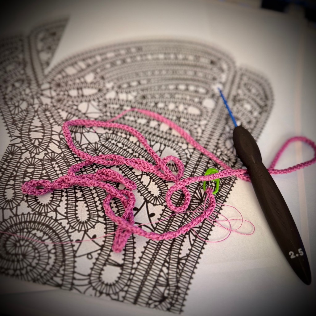 So! In natural C3 fashion I’ve chosen to go full chaos on a top that I started and have taken a full ride on the crazy train into Lace!