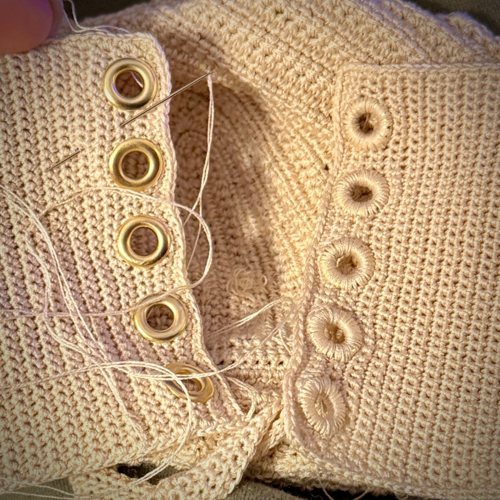 Once I have all the necessary eyelets added, I personally like to wrap/sew around my eyelets for added strength, security, and stability.